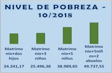 La canasta básica total de una familia tipo ascendió a $ 24.241 durante octubre de 2018. El aumento mensual de la CBA ascendió al 7,5%