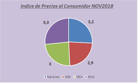 El IPC en noviembre de 2018, indicó una suba del 3,2%a, y el acumulado del nivel general de este año 43,9% y del NEA de 44,3%