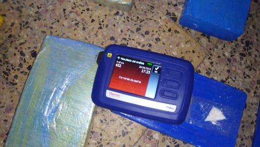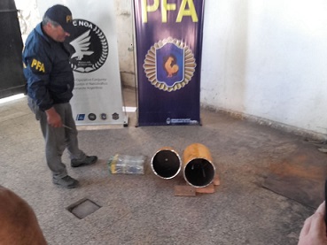 Inmediatamente se implantó un control automotor en el acceso norte de la ciudad de San Pedro, donde se interceptó al rodado. Con apoyo del can rastreador Lali, que reaccionó debajo del tubo de gas, los policías recurrieron a una amoladora industrial para cortar el acero de los mismos, ante la presunción de que allí ocultaban la droga. Fue así que en el interior de los tubos había diez panes de cocaína envueltos en nylon de distintos colores, con un peso de 10,355 kilogramos.
