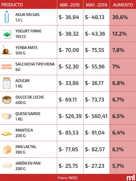 En mayo la inflación general llegó al 3,1% y acumula un alza del 19,2% en los primeros 5 meses del año informó este jueves del Instituto Nacional de Estadísticias y Censos (INDEC). En el último año los precios avanzaron un 57,3%.