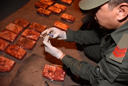 En el otro rodado viajaba un cómplice. Fue así que los efectivos procedieron al control de los vehículos. En el auto que iba una sola persona hallaron, bajo la modalidad de doble fondo, 23 paquetes rectangulares con 24,103 kg de cocaína cubiertos de grasa.