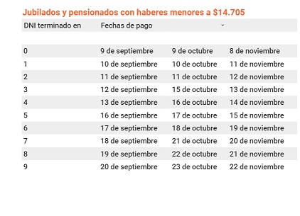 La Anses dio a conocer el calendario de pago para jubilados, pensionados y beneficiarios de pensiones no contributivas (por inválidez, vejez, por ejemplo) para los meses de septiembre, octubre y noviembre. La información fue publicada en el Boletín Oficial, donde se detallaron las fechas correspondiente a cada grupo de beneficiarios según la terminación de su número de documento.