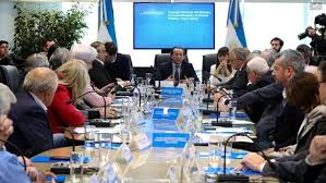 Del encuentro participaron, por el sector empresario, Daniel Funes de Rioja (UIA), Jorge Hulton (CAMARCO), Natalio Grinman (CAC), Adelmo Gabbi (Bolsa de Comercio) y Jaime Campos (AEA), entre otros.