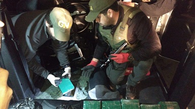 Enmarcados en el programa “Argentina Sin Narcotráfico”, impulsado por esta Cartera, los efectivos de la Unidad de Investigaciones de Delitos Complejos y Procedimientos Judiciales “Orán” de la Gendarmería Nacional, fuerza comandada por Gerardo Otero, se desplegaron sobre la intersección de las Rutas Nacionales Nº 34 y 50, donde detuvieron la marcha de un vehículo Peugeot Partner en el que se trasladaban dos ciudadanos de nacionalidad boliviana hacia la provincia de San Luis.
