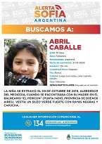 Entonces, la búsqueda de Abril Caballé, la niña de 10 años que desapareció el miércoles pasado en una playa de la localidad bonaerense de Punta Indio, ingresó al sistema Alerta Sofía, que es un mecanismo de emergencia para hallar niños desaparecidos, a cargo de la Secretaría de Cooperación con los Poderes Constitucionales de Pablo Noceti.