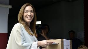 La gobernadora de la provincia de Buenos Aires sufragó en el Colegio Parroquial Don Bosco. Deberá descontarle una distancia de 17,9 puntos porcentuales al candidato Axel Kicillof del Frente de Todos en una elección que no tendrá balotaje