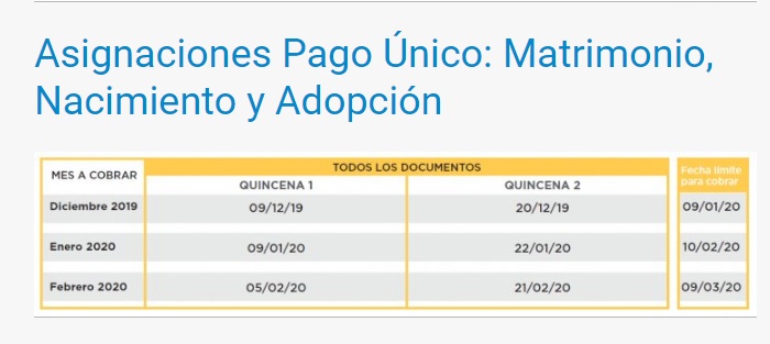 Asignaciones Pago Único: Matrimonio, Nacimiento y Adopción