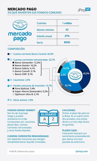 El rendimiento, reflejado a diario en los saldos, hoy está en 37% anual, lo que supone un 3% mensual. Los usuarios de Mercado Pago poseen invertidos $6.000 en promedio, por lo que ganan $180 al mes en intereses.