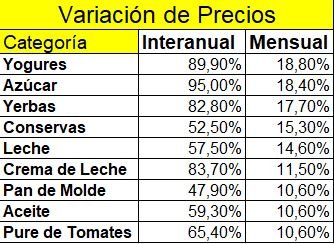 El Yogurt (18,8%), el Azúcar (18,4%) y la Yerba (17,7%) fueron los alimentos que más se encarecieron durante enero en la comparación con el mes anterior de acuerdo a un informe de Focus Market vía Scanntech (lector de código de Punto de Venta). También se destacaron incrementos cercanos al 15% en Leche y Conservas mientras que la Crema de leche, el Pan de Molde y el Aceite percibieron aumentos próximos al 10%.