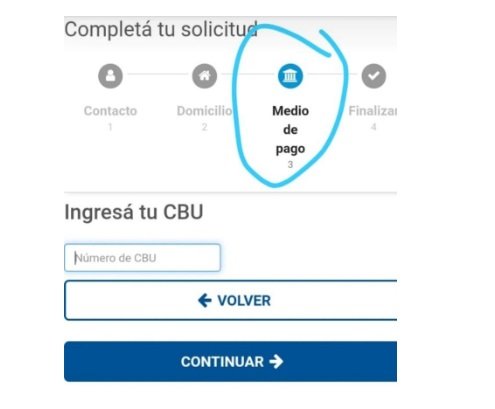 Medio de Pago. Aquí simplemente ingresamos el numero de CBU. El Mismo debe ser de titularidad del beneficiario. NO de terceros ni familiar.