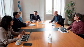 El jefe de Gabinete, Santiago Cafiero, se encuentra reunido con Horacio Rodríguez Larreta, Eduardo de Pedro y Vilma Ibarra.