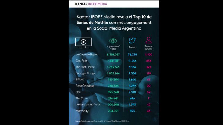 La cuarentena por la pandemia de coronavirus disparó el consumo de contenidos por streaming, pero no sólo eso: a la visualización se le suman también las opiniones vertidas en redes sociales. En ese marco, Kantar IBOPE Media reveló el ranking de series de Netflix más comentadas en redes sociales de Argentina.