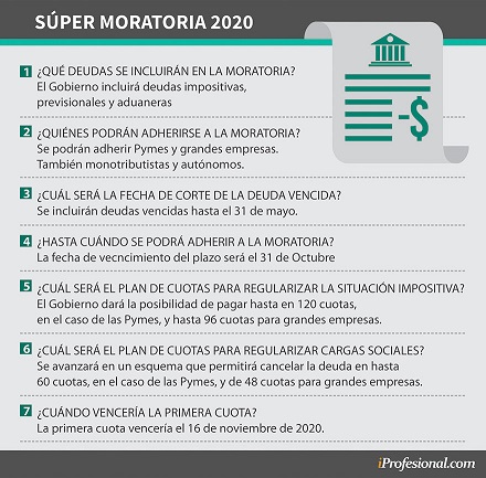 El siguiente cuadro resume los puntos principales de la Moratoria 2020 que el Gobierno está impulsando: