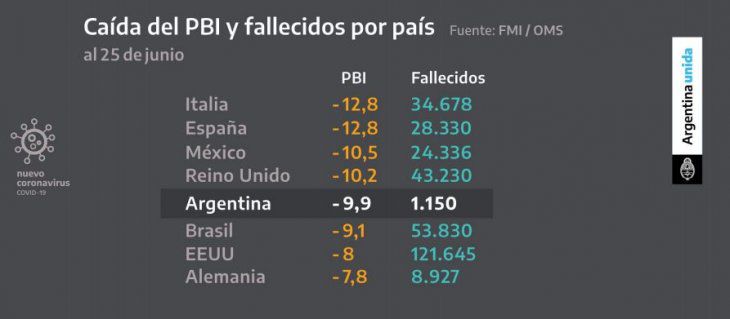 "El problema no es la cuarentena, es la pandemia", sostuvo el mandatario. Así lo mostró, por ejemplo, el Fondo Monetario Internacional (FMI), al advertir una caída del 9,1% en el PBI de Brasil o del 8% en EEUU, naciones que subestimaron al Covid-19 y no aplicaron las restricciones a la movilidad que aplicó Argentina.