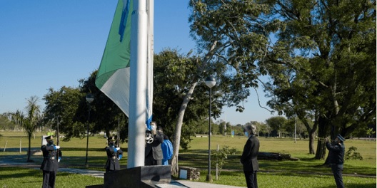 El presidente del Poder Legislativo del Chaco, Hugo Sager participó este jueves junto al gobernador Jorge Capitanich y funcionarios provinciales del izamiento del Pabellón Nacional, que tuvo lugar en el Parque de la Democracia, de Resistencia, en el marco de la conmemoración por el 204° aniversario de la declaración de la independencia nacional.
