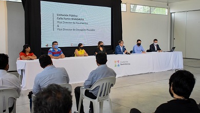 Por medio de una conferencia de prensa, el intendente Gustavo Martínez, en el marco del plan Ciudad en Desarrollo, este viernes por la mañana concretó el llamado a licitación pública para la ejecución de trabajos de pavimentación de quince cuadras y obras complementarias en la calle Fortín Rivadavia, así como un conducto troncal de desagües pluviales bajo la calle Duvivier que permitirá el saneamiento hídrico de toda la cuenca de Villa Libertad.
