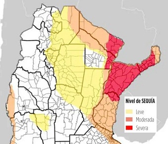 Por las temperaturas récord y la falta de precipitaciones, las condiciones de sequía empeoraron severamente, principalmente en el noreste del país. Como consecuencia, según un último informe oficial, el área en situación de riesgo alcanza a 112.780.723 hectáreas, de las cuales 1.916.414 hectáreas corresponden a cultivos. Además, están en riesgo 14.762.487 de cabezas bovinas.