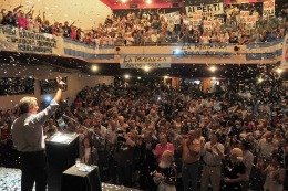 “La campaña no puede ser `Ella o vos`, eso es profundizar la polarización. No es `Ella o vos` sino que es `Todos`, sino vamos al modelo Venezuela”, dijo Solá al concluir su discurso en alusión a la campaña gráfica que realizó en las últimas semanas De Narváez, también precandidato a diputado.