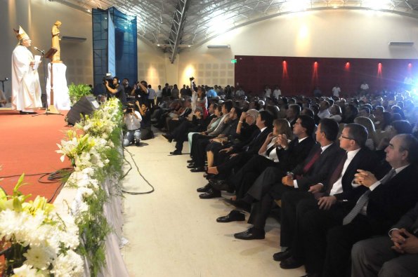 El gobernador Jorge Capitanich participó en la noche de este viernes de la misa concelebrada por el flamante arzobispo de la Arquidiócesis de Resistencia, monseñor Ramón Alfredo Dus y el arzobispo emérito, monseñor Fabriciano Sigampa realizada en el Domo del Centenario. La ceremonia religiosa significó la primera homilía del nuevo máximo representante de la Iglesia Católica en esta parte de la provincia, en la que destacó el espíritu de cooperación mutua con el Estado provincial, trabajando al servicio de la gente y sobre todo para los que más necesitan.