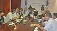 De la reunión, que se desarrolló en el Salón de Acuerdos, participaron también los subsecretarios Roberto Medina (Trabajo) y Ricardo Marimón (Comcercio); el intendente de Tirol Hugo Ságer; trabajadores del Frigorífico y el empresario Sergio Vicentín, representante de Friar.