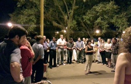 La reunión de la noche del martes en la Plaza España con los vecinos de la zona contó con la presencia de varios representantes de los sectores involucrados en el mejoramiento del espacio,