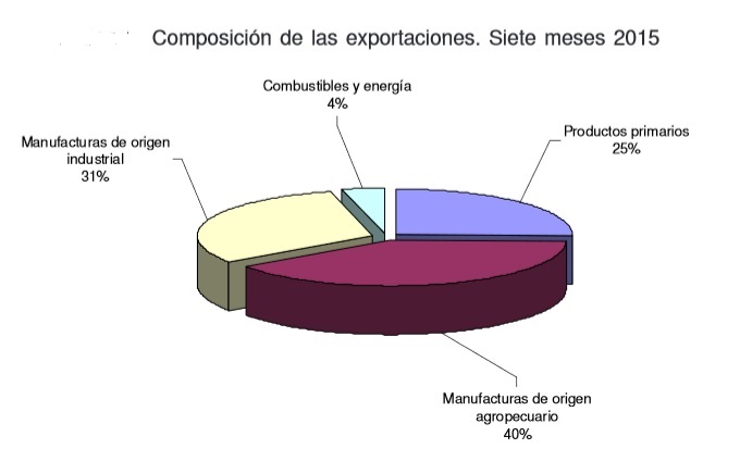 En cuanto a la distribución de los productos exportados de los siete meses del año 2015, la composición es la siguiente: