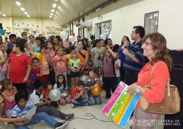 “Hubo regalos para todos los chicos, y de merienda tuvieron chocolate caliente con torta, hecho por cocineros del Comedor Universitario”, comentó la rectora, y destacó la colaboración tanto de la Secretaría General de Extensión, a cargo del Juan Irala, como de la Secretaría de Asuntos Sociales, dirigida por Jorge Saucedo, para la realización del festejo.