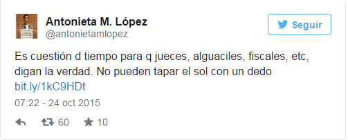 "Es cuestión de tiempo para que jueces, alguaciles, fiscales, etc, digan la verdad. No pueden tapar el sol con un dedo. La presión que sufren los miembros del Poder Judicial por parte del Ejecutivo acabará cuando pierdan el miedo", enfatizó.
