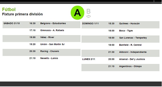 Fixture Primera División A