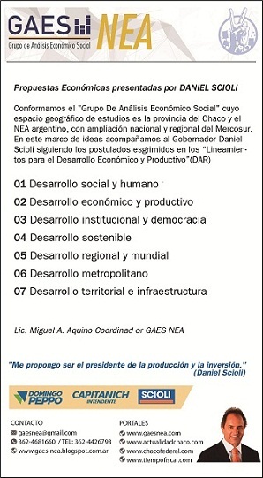 GAES NEA invita a la exposición sobre el análisis de la Propuestas Económicas de Daniel Scioli, que se llevará a cabo en la sede del Partido Justicialista el día jueves 12 de noviembre a las 19 hs., sito en Mitre y Rivadavia - Resistencia.