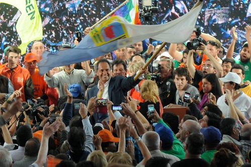 El candidato a presidente por el Frente para la Victoria, Daniel Scioli, realizó hoy su primer acto de campaña de cara al balotaje y pidió a los argentinos, con una frase del papa Francisco, elegir este domingo entre "el Estado presente o el capitalismo salvaje", en referencia a su rival Mauricio Macri (Cambiemos) a quien volvió a llamar "el líder de la alianza conservadora que quiere aplicar una devaluación, un ajuste y una quita de subsidios".