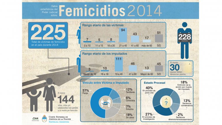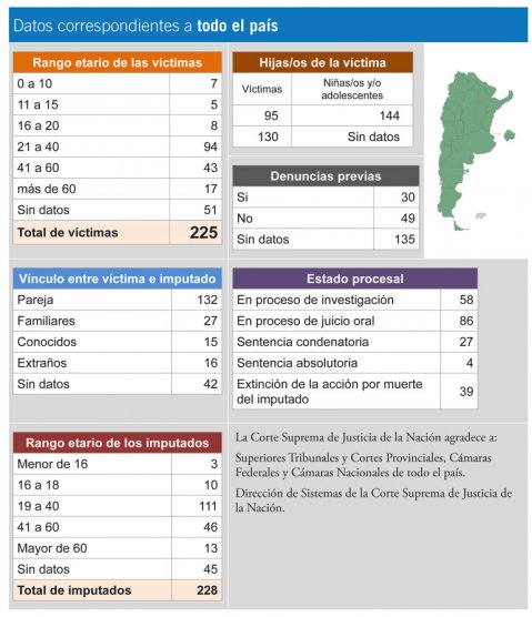 La Corte divulgó el primer informe de la Oficina de la Mujer. En total se registraron 225 crímenes y más de la mitad fueron perpetrados por ex maridos o parejas. Buenos Aires es el distrito con más víctimas