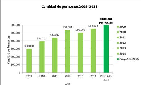 · Se duplicó la cantidad de pernoctes de turistas en la provincia, pasando de 309.000 pernoctes anuales en el 2009 a 612.000 pernoctes proyectados en el 2015.