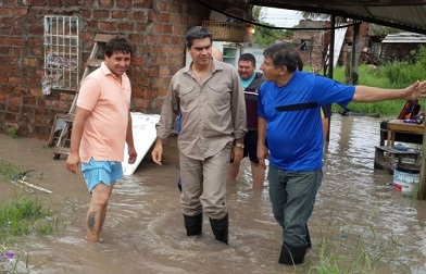 El intendente de Resistencia, Jorge Capitanich, recorrió este domingo el barrio Sampa en la zona sur de la ciudad, afectado por las copiosas lluvias caídas desde la madrugada. Según el jefe comunal, se registraron cerca de 80 milímetros de precipitaciones que provocaron anegaciones de calles en diferentes puntos de la ciudad. “Este tipo de acontecimiento nos obliga a trabajar con mucho esfuerzo, ya que será algo habitual por la corriente del Niño con lluvias superiores a las normales”, agregó el intendente.