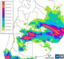 El pronóstico de precipitaciones indica la continuidad de tiempo lluvioso con mejoras temporarias, para toda esta semana, tanto en la provincia como en región Noreste del país y el Sur de Brasil. Es una clara manifestación de lo que significa el fenómeno del Niño 2015 que tiene su área de impacto con precipitaciones por encima de lo normal al Sur de Brasil y el Noreste de Argentina.