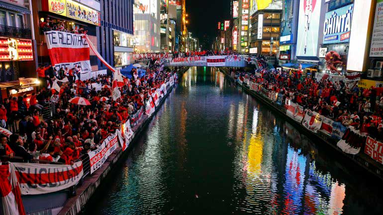 El plantel recibió el apoyo de una multitud de hinchas de River que viajaron a Japón. El martes los simpatizantes sorprendieron al equipo con banderazo. Más de siete mil hinchas con camisetas y banderas rojas y blancas se juntaron en torno al canal en Dotonbori para cantar y alentar en la previa del debut.