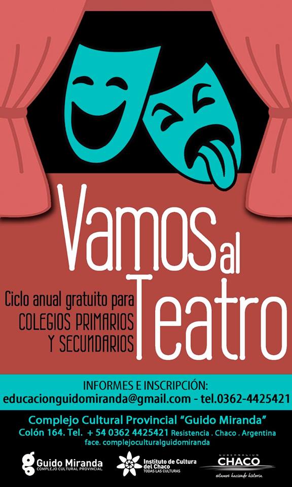 La Escuela va al Cine y Vamos al TeatroCon la obra Chaque el Dengue, el jueves 14 de abril, a las 9.30 y a las 14, el Complejo Cultural Guido Miranda (Colón 164) comienza las entregas del ciclo Vamos al teatro, que se replicará todos los jueves del año, en dos funciones. La propuesta, a la que se suman El Guido de Todos y Vamos al Cine tiene como objetivo democratizar el acceso a las producciones artísticas, favorecer la formación de espectadores con juicio crítico y fomentar la participación ciudadana en las producciones artísticas.
