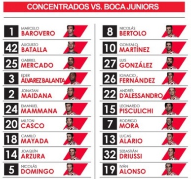 El DT de River confirmó la lista de convocados para el Superclásico, en la que fueron incluidos Mora y Mammana, quienes no actuaron por la Copa ante Trujillanos.