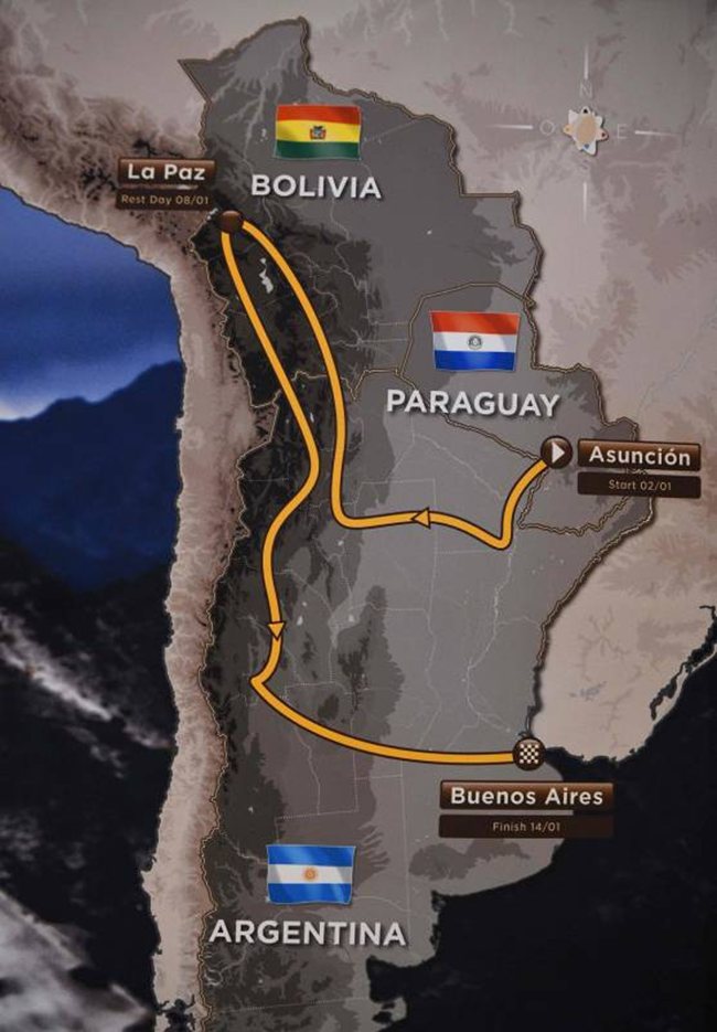 El próximo año, tras la salida desde Paraguay, el recorrido seguirá en Bolivia, por donde discurrirán cinco etapas, mientras que la jornada de descanso tendrá lugar en La Paz, capital del país, situada a más de 3.500 metros sobre el nivel del mar.