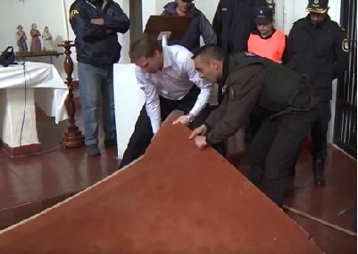 Debajo del altar de la capilla del monasterio donde fue detenido José López había un receptáculo aparentemente preparado para ocultar dinero