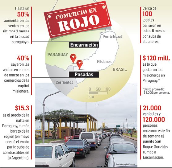 Los precios convenientes y el fácil acceso a la ciudad paraguaya de Encarnación desde la provincia de Misiones profundizan la crisis en los comercios de Posadas, que en lo que va del año ya registran caídas en las ventas de entre 30% y 40%, según datos de las cámaras de comercio locales.