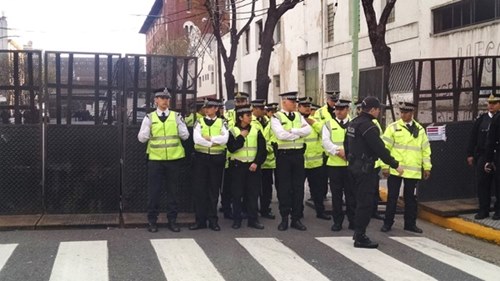 A las 9, cuando comenzó la audiencia con el discurso del ministro de Energía, Juan José Aranguren, había un centenar de manifestantes en la intersección de las calles Agustín Caffarena y Pedro de Mendoza con banderas que exigen "abajo el tarifazo".