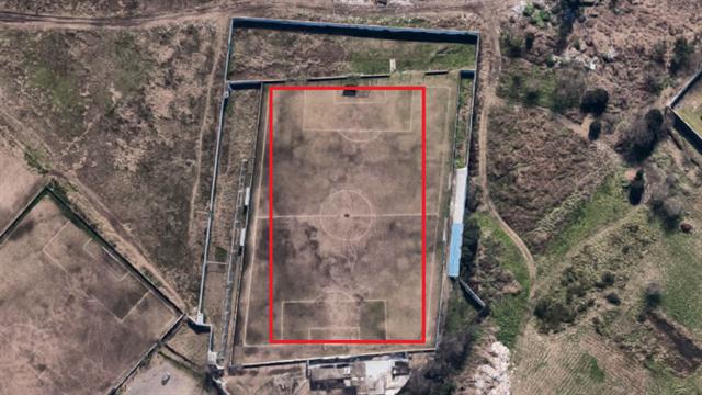 Una toma cenital del Google Maps permite distinguir con claridad que el perímetro de la cancha, que en vez de ser un rectángulo de simetrías, deviene en un trapezoide casi delirante.
