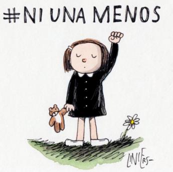 En tanto, el dibujante Ricardo Siri “Liniers” publicó hoy en su perfil de Twitter una nueva versión de su dibujo de "Enriqueta", que sirvió de insignia para la primera y segunda marcha de #Niunamenos.