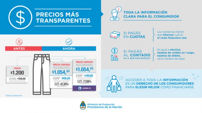 Bajo el concepto de "precios transparentes" el gobierno nacional anunció nuevas medidas que incluyen la obligatoriedad para los comerciantes de "separar el precio al contado de la opción en cuotas" para lograr "mayor transparencia" que derive en una "mejor consumo".