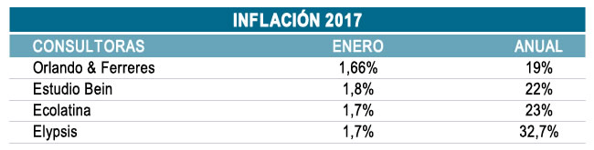 Consultoras mantienen una pauta inflacionaria para 2017 por encima de la meta del 17% prevista por el Gobierno
