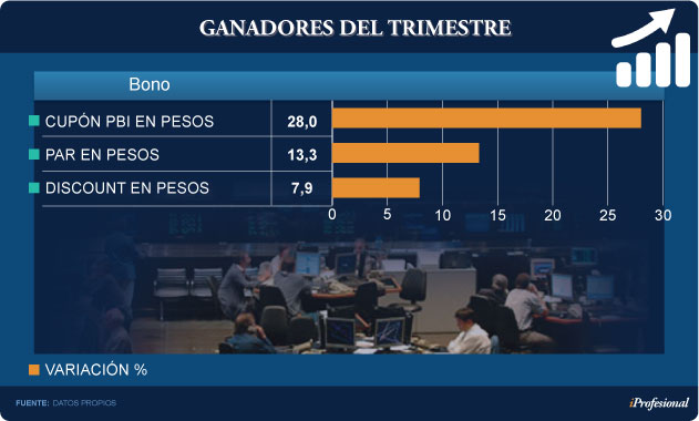 En tal sentido, lo más relevante del acumulado trimestral es el repunte del Cupón atado al PBI en pesos, con una suba cercana al 28%.