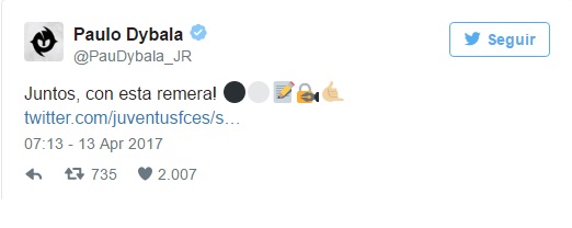 El argentino Paulo Dybala renovó este jueves hasta el 30 de junio de 2022 con la Juventus. "Juntos por un tiempo largo, con esta camiseta", escribió el cordobés en su cuenta de Twitter.