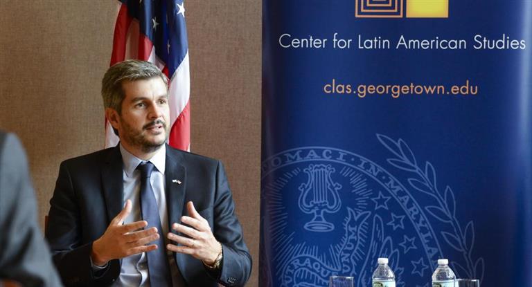 Ante un público integrado principalmente por estudiantes, el Jefe de Gabinete -que arribó esta mañana a la capital norteamericana- afirmó que a la Argentina "no le da lo mismo cualquier cosa" y, en ese contexto, el fortalecimiento de la región "es una prioridad".