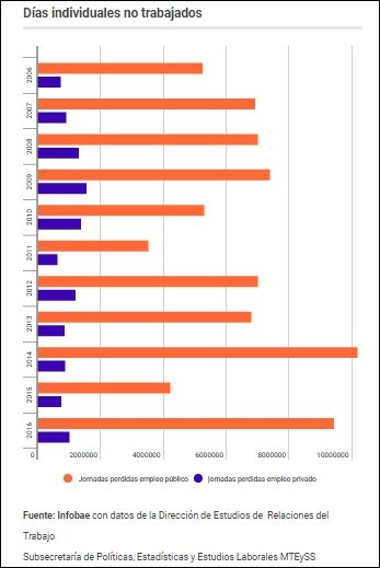 Las jornadas de trabajo perdidas en la administración pública fueron 9,4 veces más que las de la actividad particular